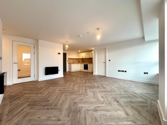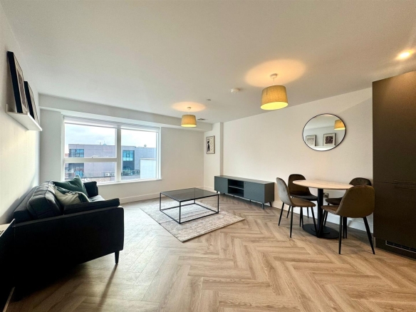 Large open plan living room/dining area with contemporary wooden flooring