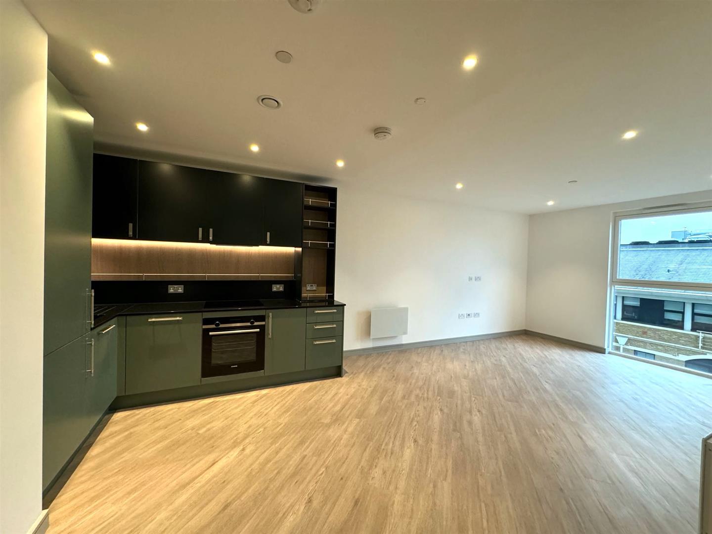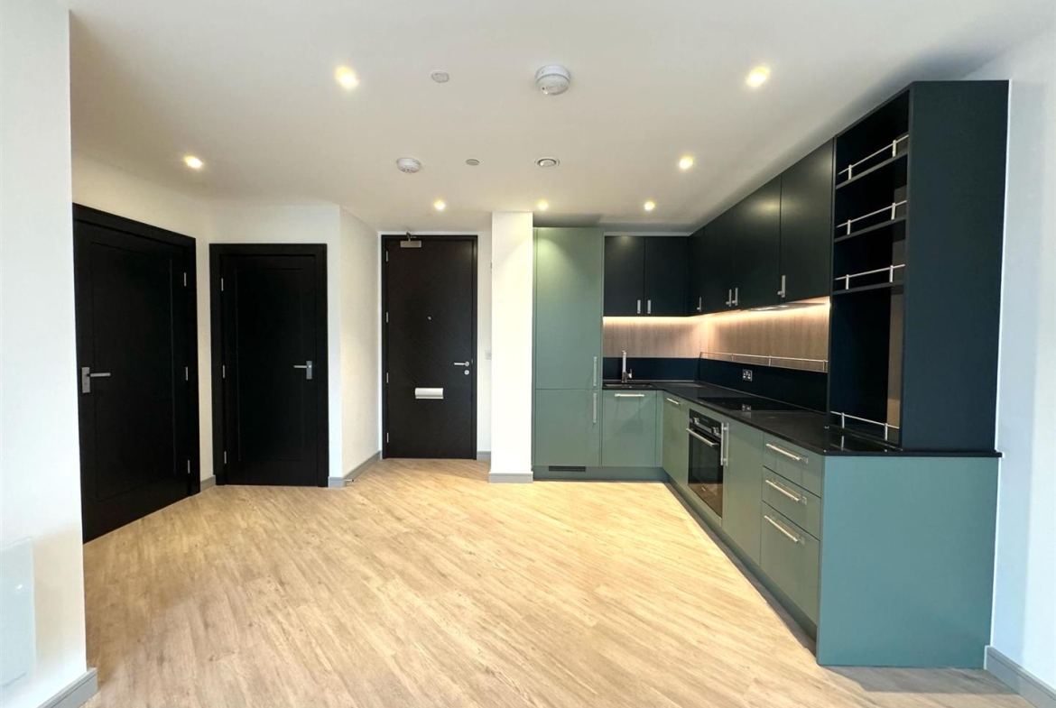 The property itself benefits from a large open plan living area with light Karndean wooden flooring, stylish olive coloured kitchen with integrated appliances including dishwasher, double bedroom with large built in double wardrobe, luxury bathroom suite with bath and rain shower plus utility cupboard with washer dryer, secure video phone entry system and neutral decoration throughout.