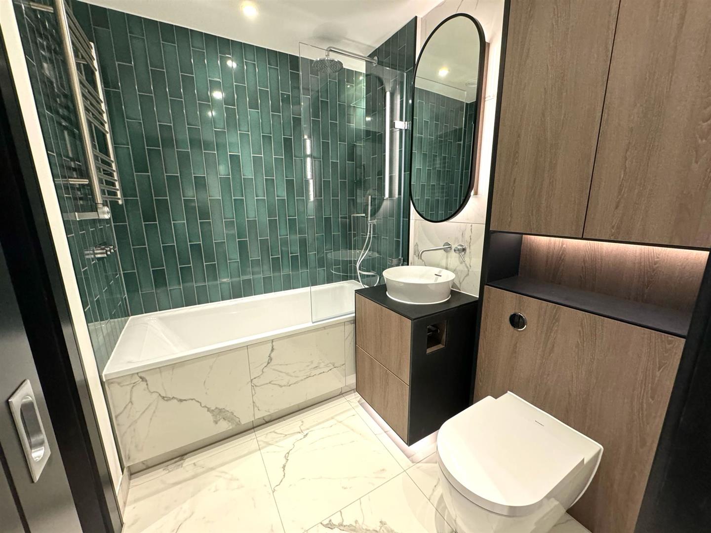 - Luxury bathroom suite with rain shower, bath, heated towel rail and utility cupboard with water dryer