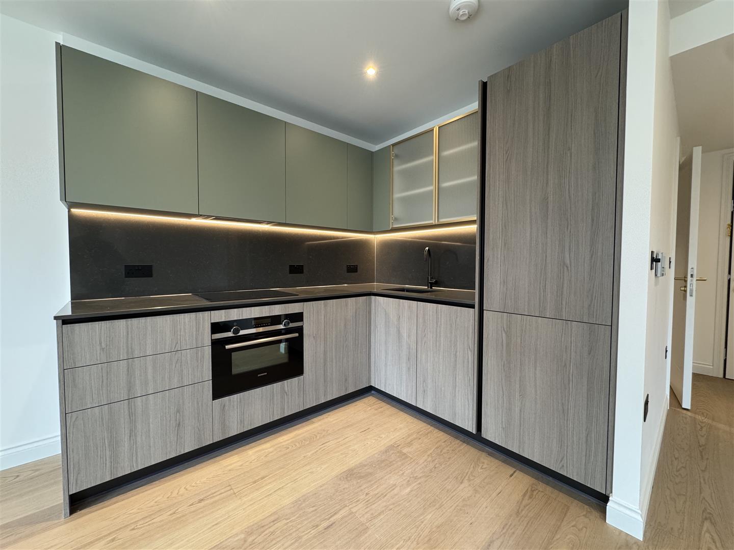 This impressive property benefits from a hall area with utility cupboard and large storage cupboard, large open plan living area with wooden flooring and wardrobe in sleeping area, a long private balcony, stylish fully integrated kitchen, luxury shower room, neutral decoration throughout, underfloor heating throughout and secure video entry.