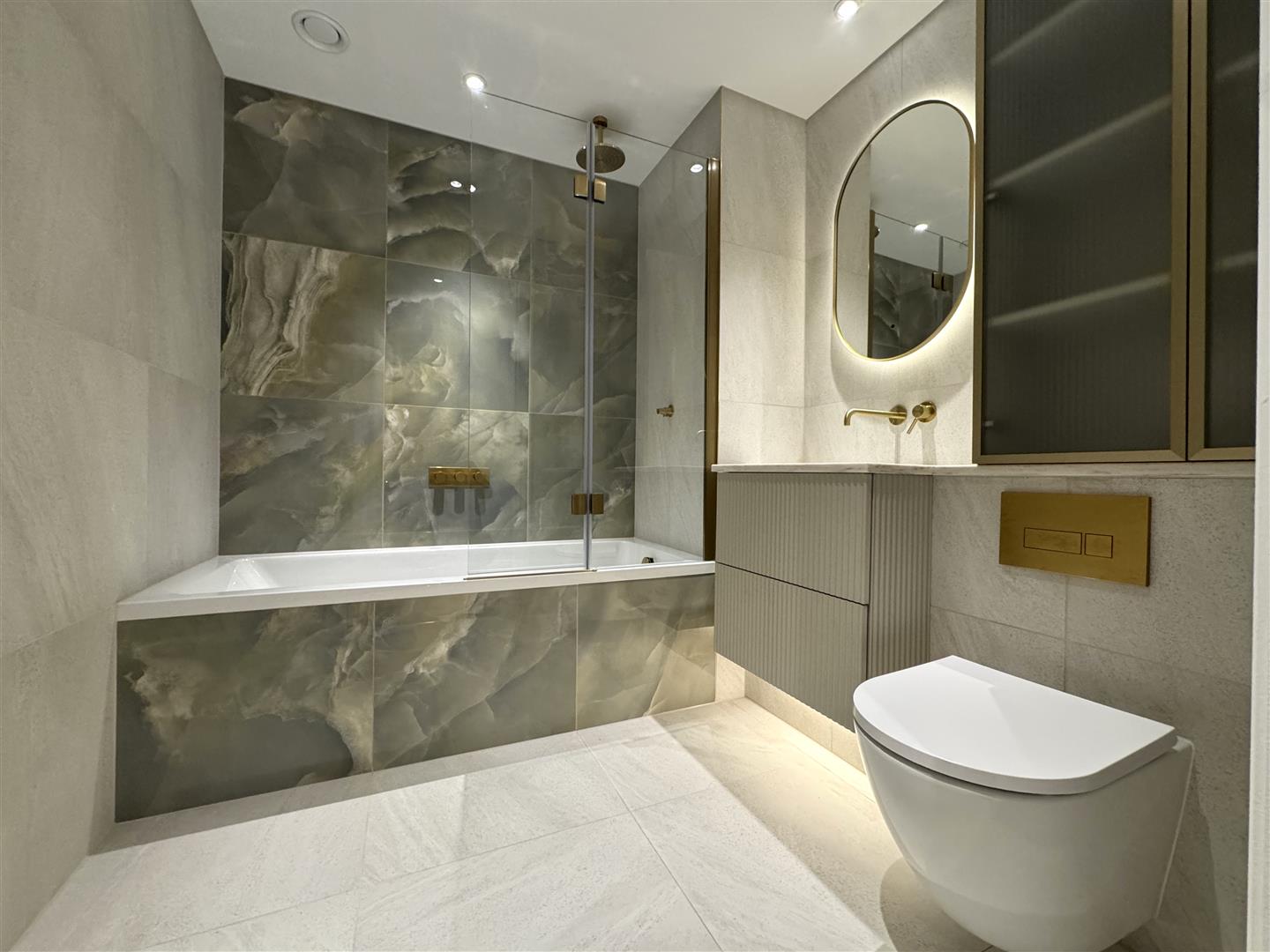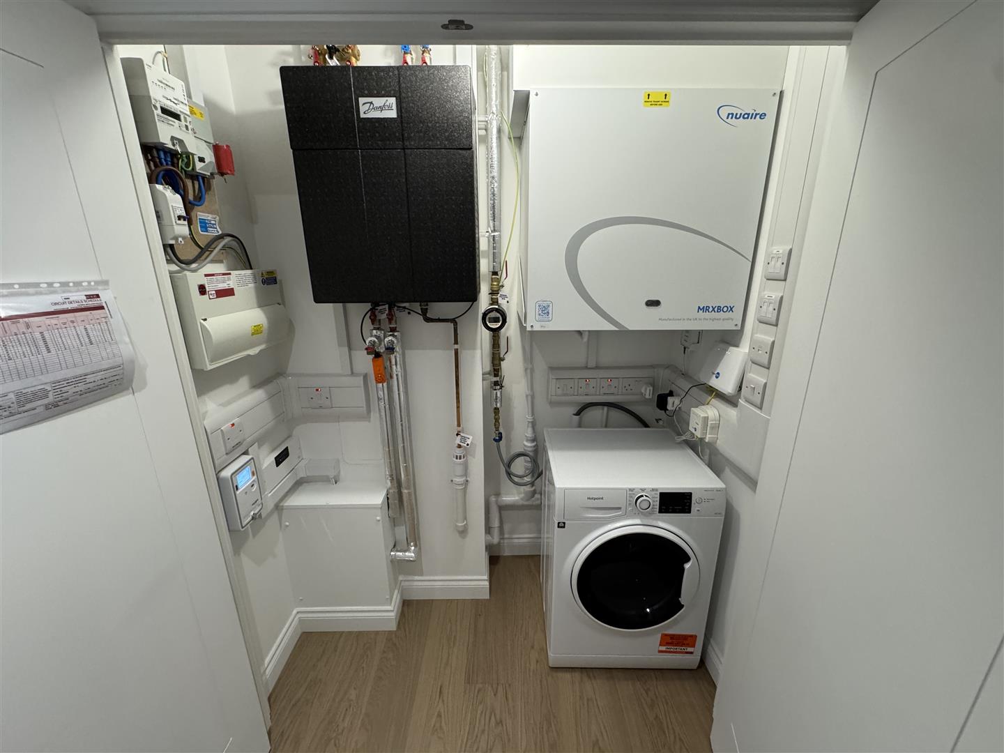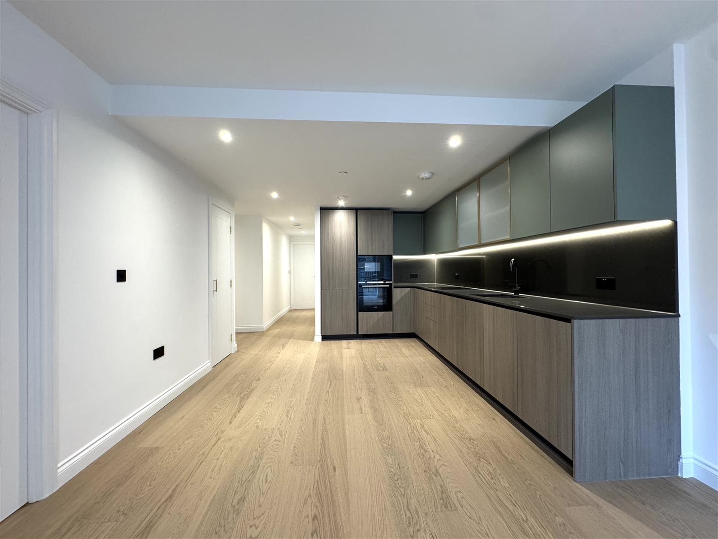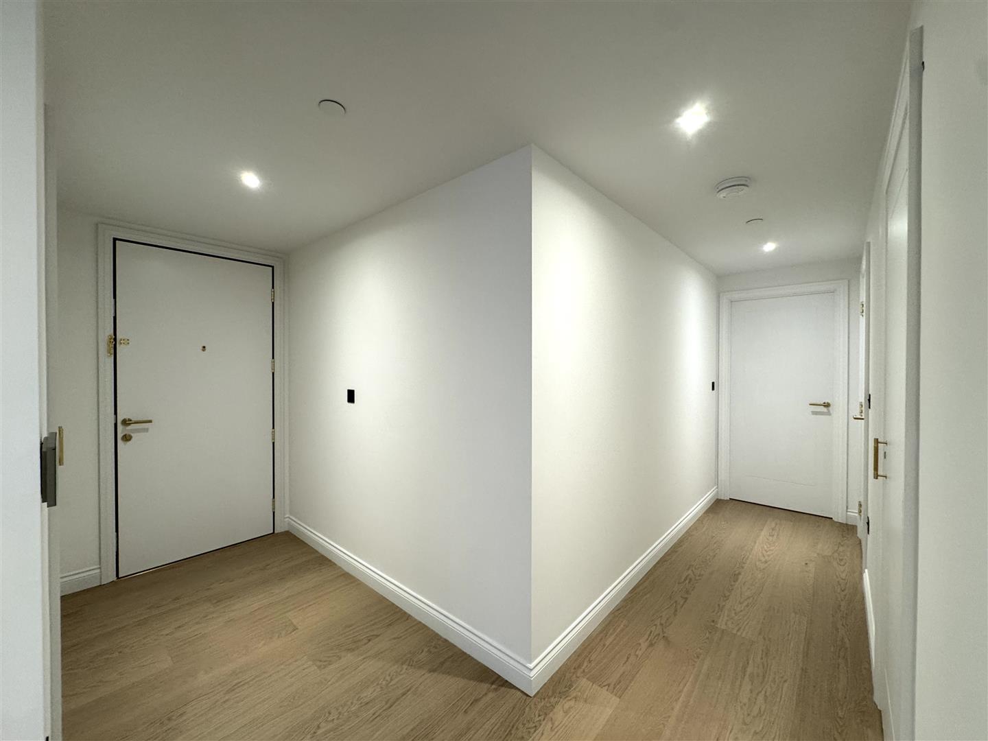 This impressive property benefits from a long entrance hallway with a large storage cupboard and a utility cupboard leading to a large open plan living area with wooden flooring, small storage cupboard and access to a long private balcony, stylish fully integrated kitchen, two large double bedrooms, two luxury bathrooms, neutral decoration throughout, underfloor heating throughout and secure video entry.