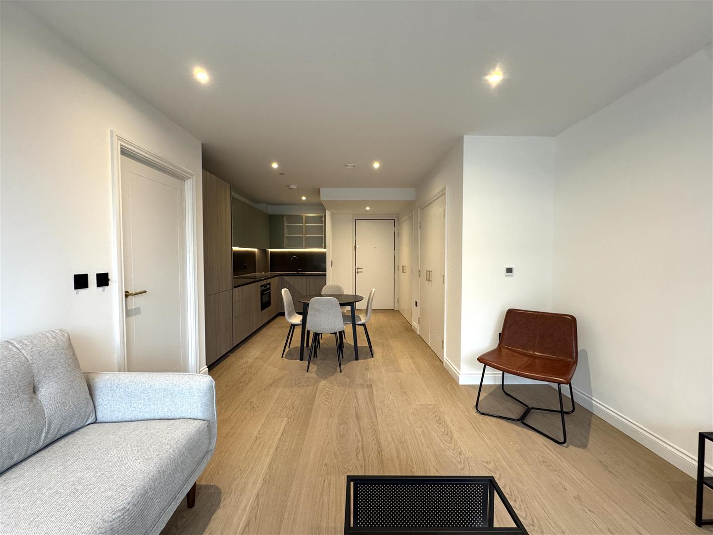 This impressive property benefits from a large open plan living area with wooden flooring, storage cupboard and access to a long private balcony, stylish fully integrated kitchen and separate utility cupboard with washer dryer, large double bedroom with dressing area, luxury bathroom suite with bath and shower, neutral decoration throughout, underfloor heating throughout and secure video entry.