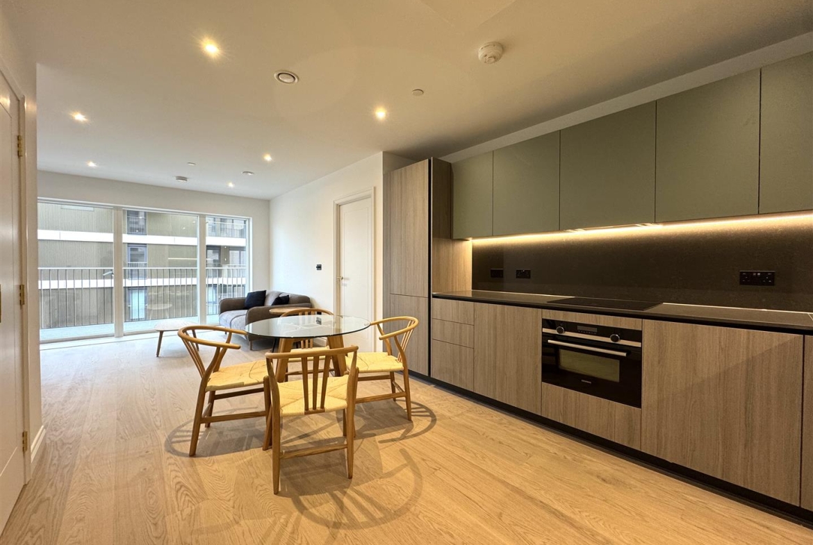 This impressive property benefits from a large open plan living area with wooden flooring, storage cupboard and access to a long private balcony, stylish fully integrated kitchen and separate utility cupboard with washer dryer, large double bedroom with dressing area, luxury bathroom suite with bath and shower, neutral decoration throughout, underfloor heating throughout and secure video entry.