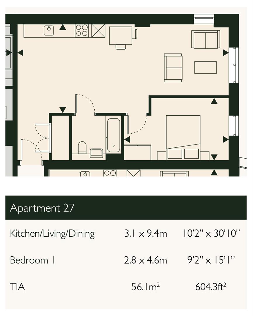 New to the market, this spacious brand-new one double bedroom apartment is located on the third floor of the sought after Trafford Gardens development.