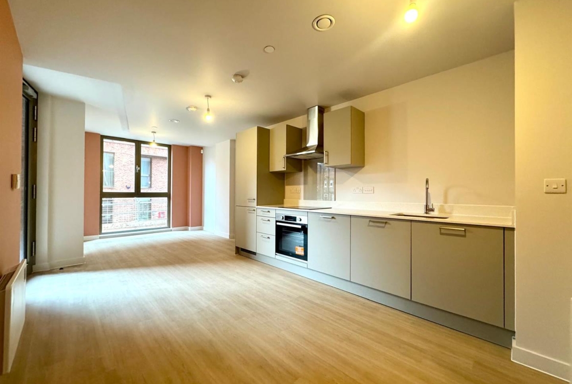 The apartment benefits from a private patio entrance leading into a spacious open plan living room/dining area with contemporary wooden flooring and stylish grey kitchen with integrated appliances. Off the hallway are two carpeted double bedrooms, the master benefiting from an ensuite shower room and a there is a further family sized bathroom with bath and shower. The hallway also offered two large cupboard offering ample storage space.