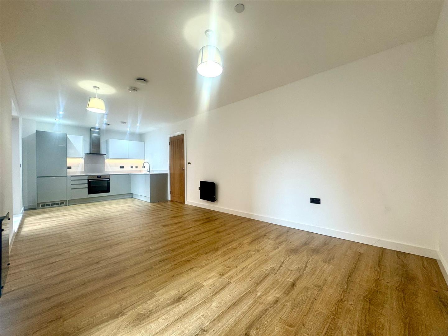 - Large open plan living room/dining area with contemporary wooden flooring