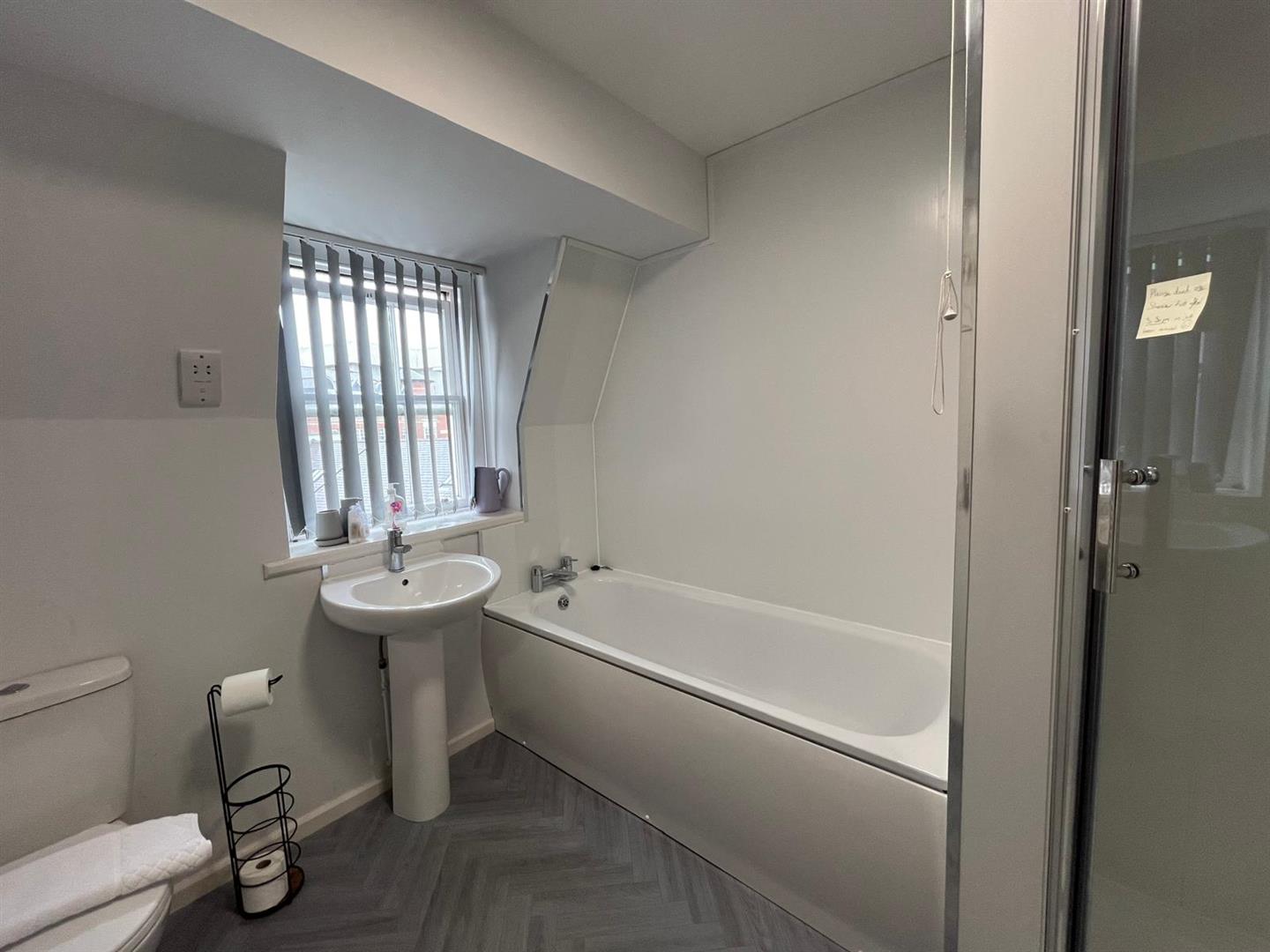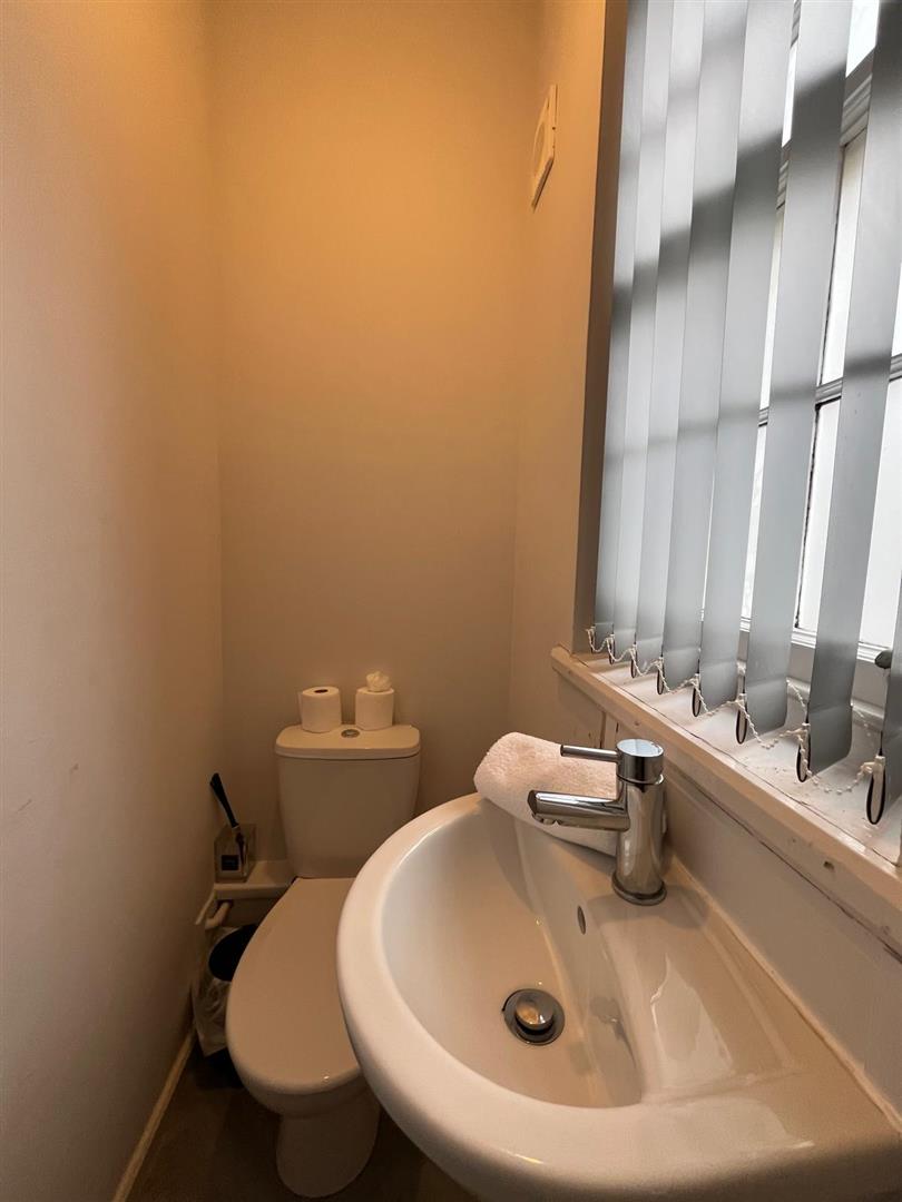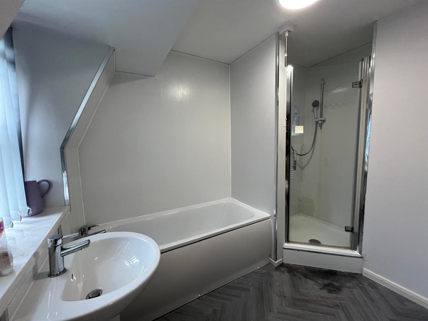 The property comprises three double bedrooms with a refurbished bathroom, lounge, fitted kitchen equipped with cooker and hob, washing machine, fridge and a downstairs toilet. The main bathroom features a shower cubicle, bath, toilet, and hand basin.