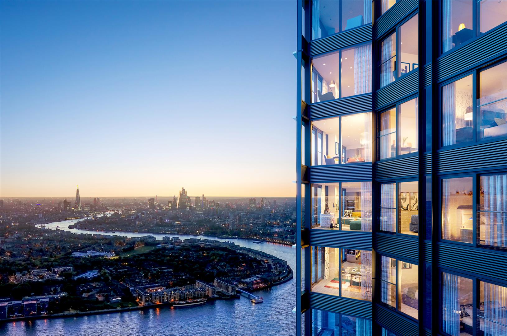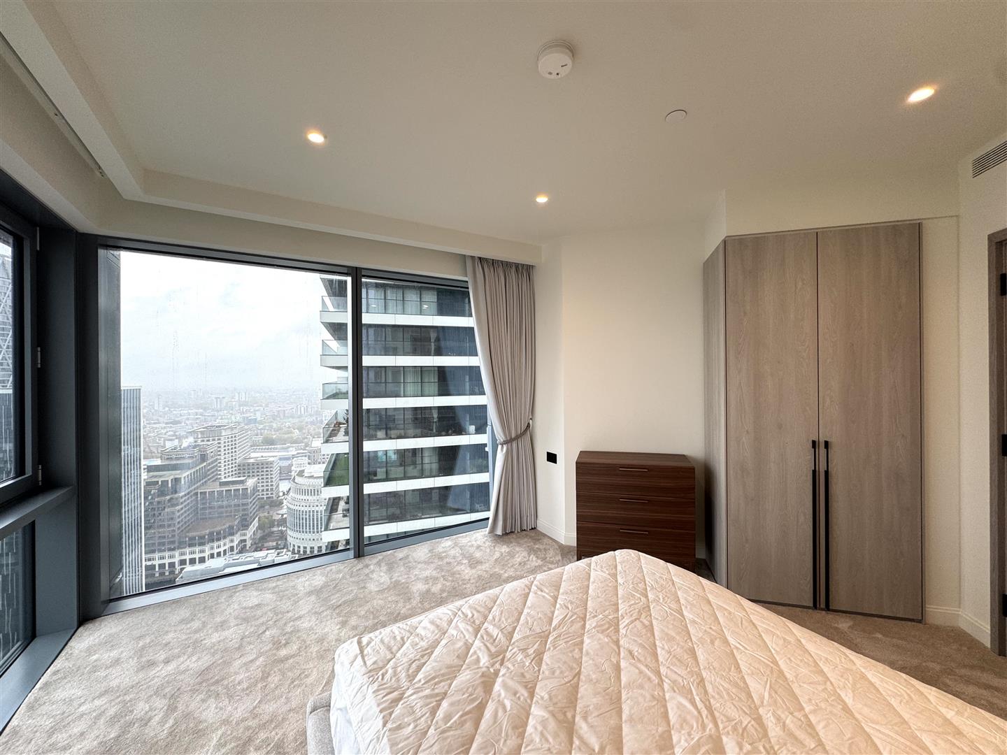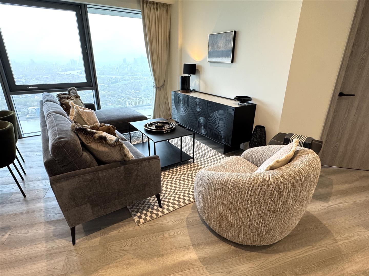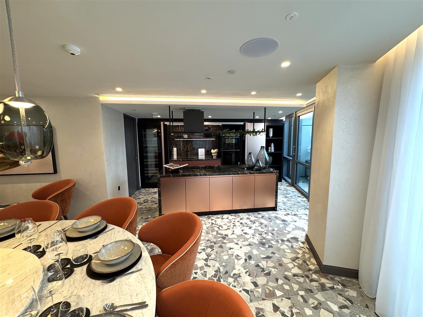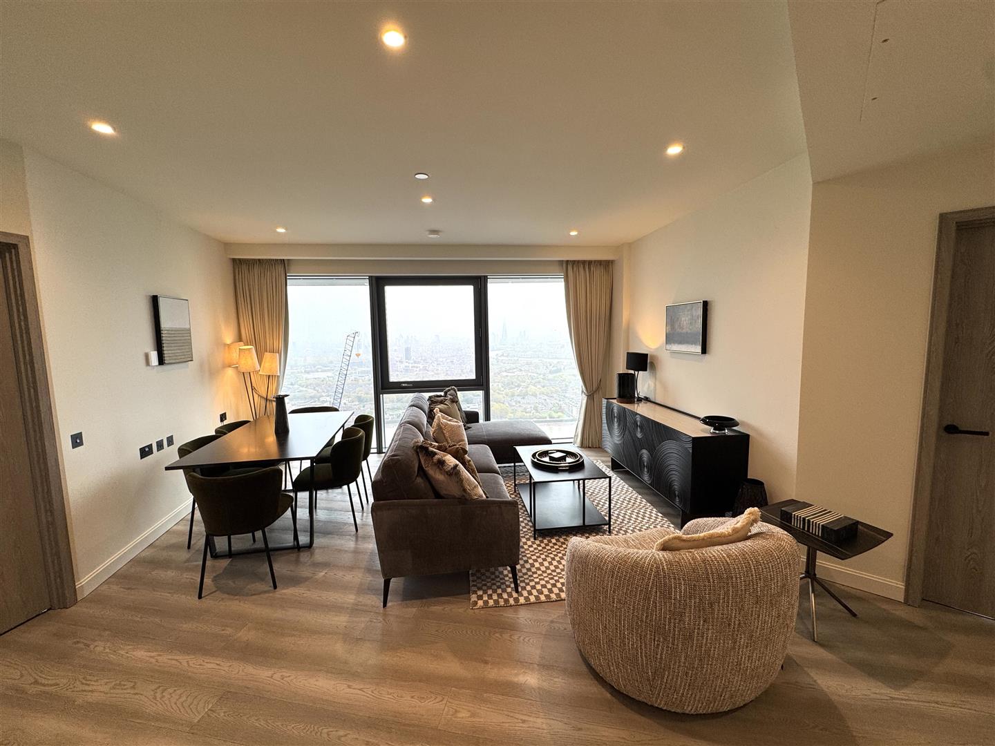 The apartment offers stunning far reaching views across the city of London from the living area and all three bedrooms.