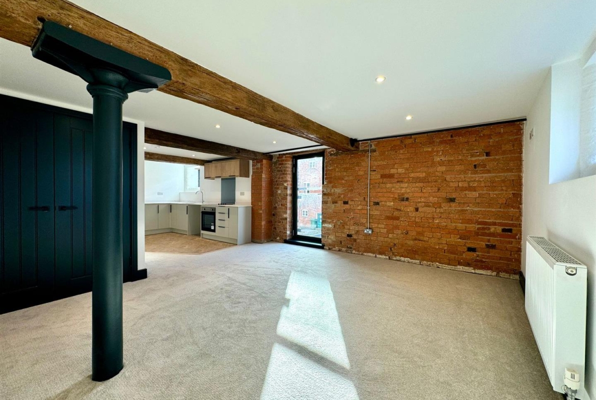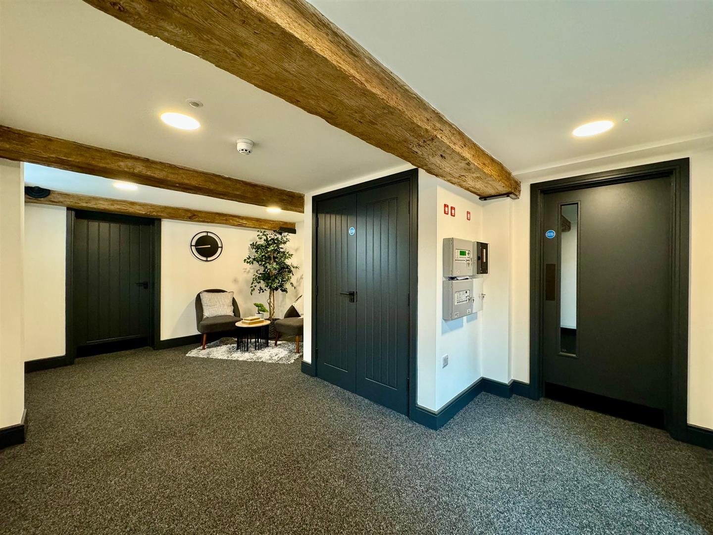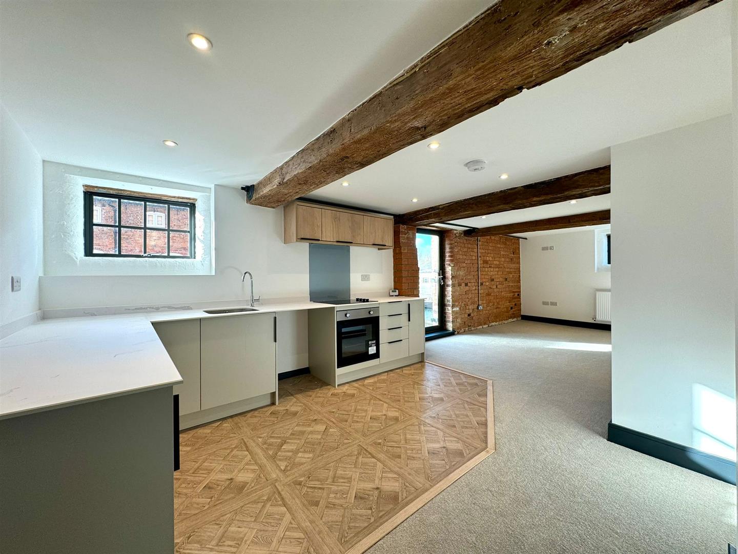 With exposed brickwork and original beams throughout, the property is carpeted with neutral decoration and benefits from lift access and a secure-entry intercom system.