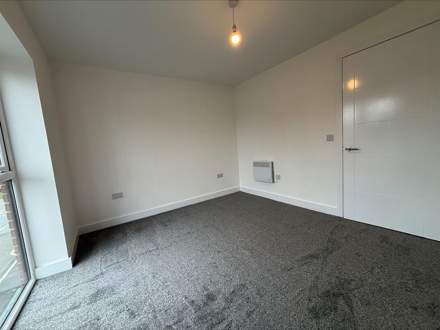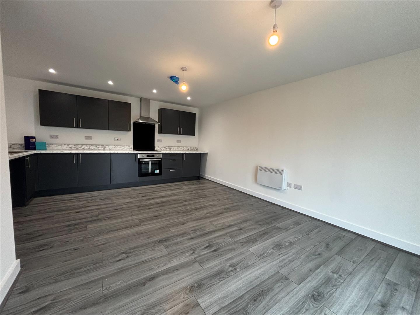 The apartment is offered unfurnished and briefly comprises a bright and spacious living area, a modern fitted kitchen, two well-proportioned bedrooms, and a bathroom with a corner shower. Finished in neutral tones throughout, the property provides a clean and versatile living space ready to make your own.