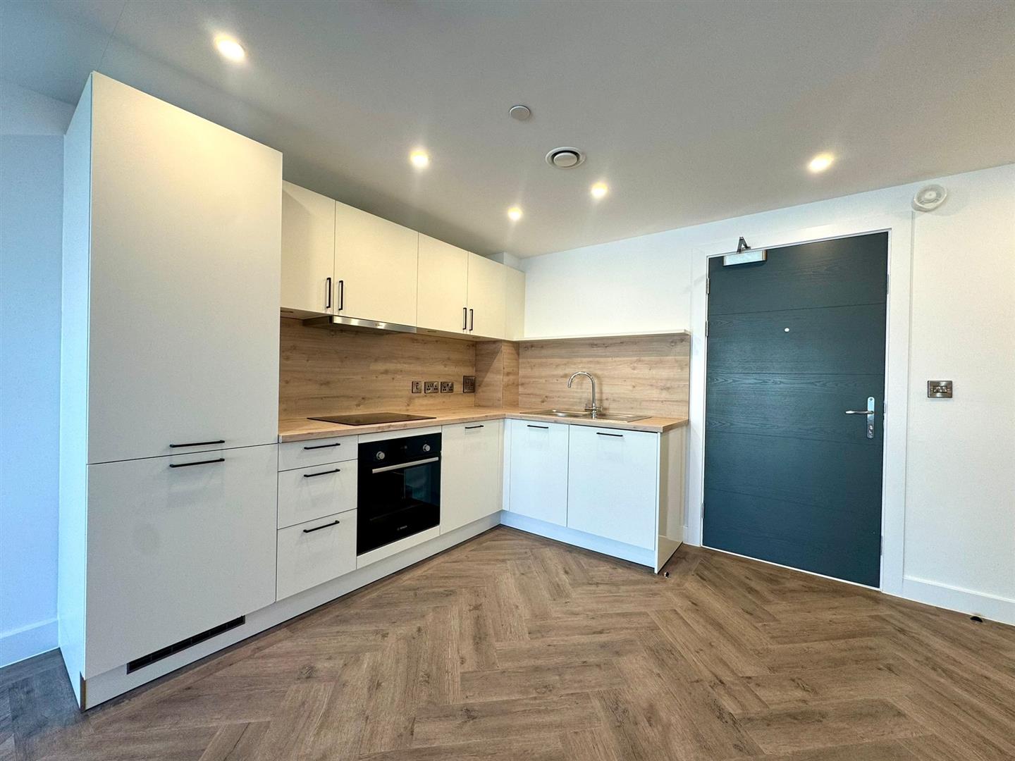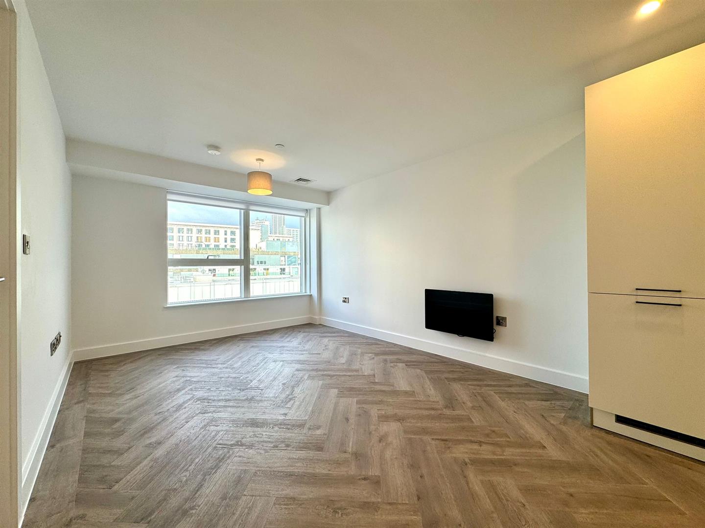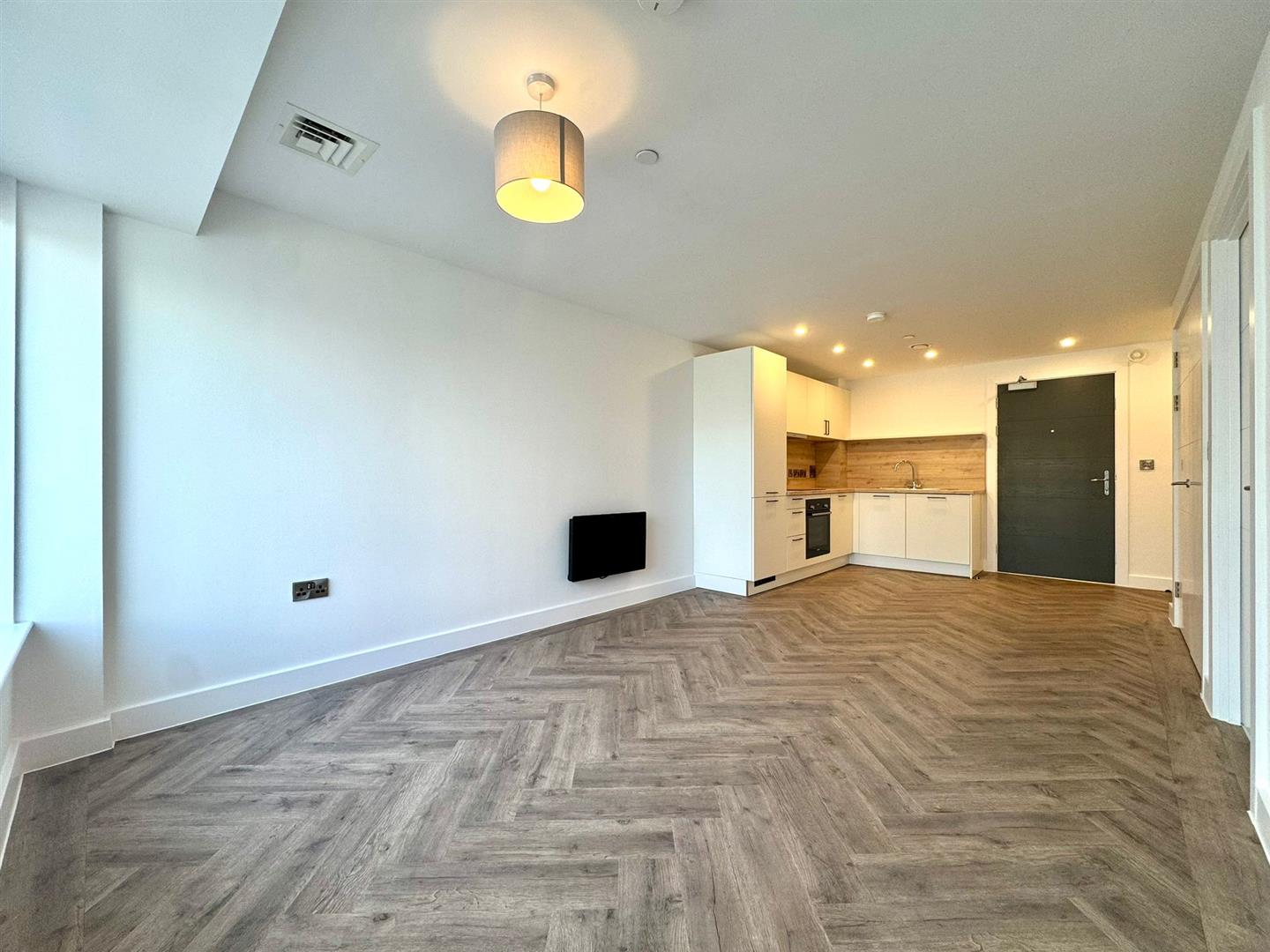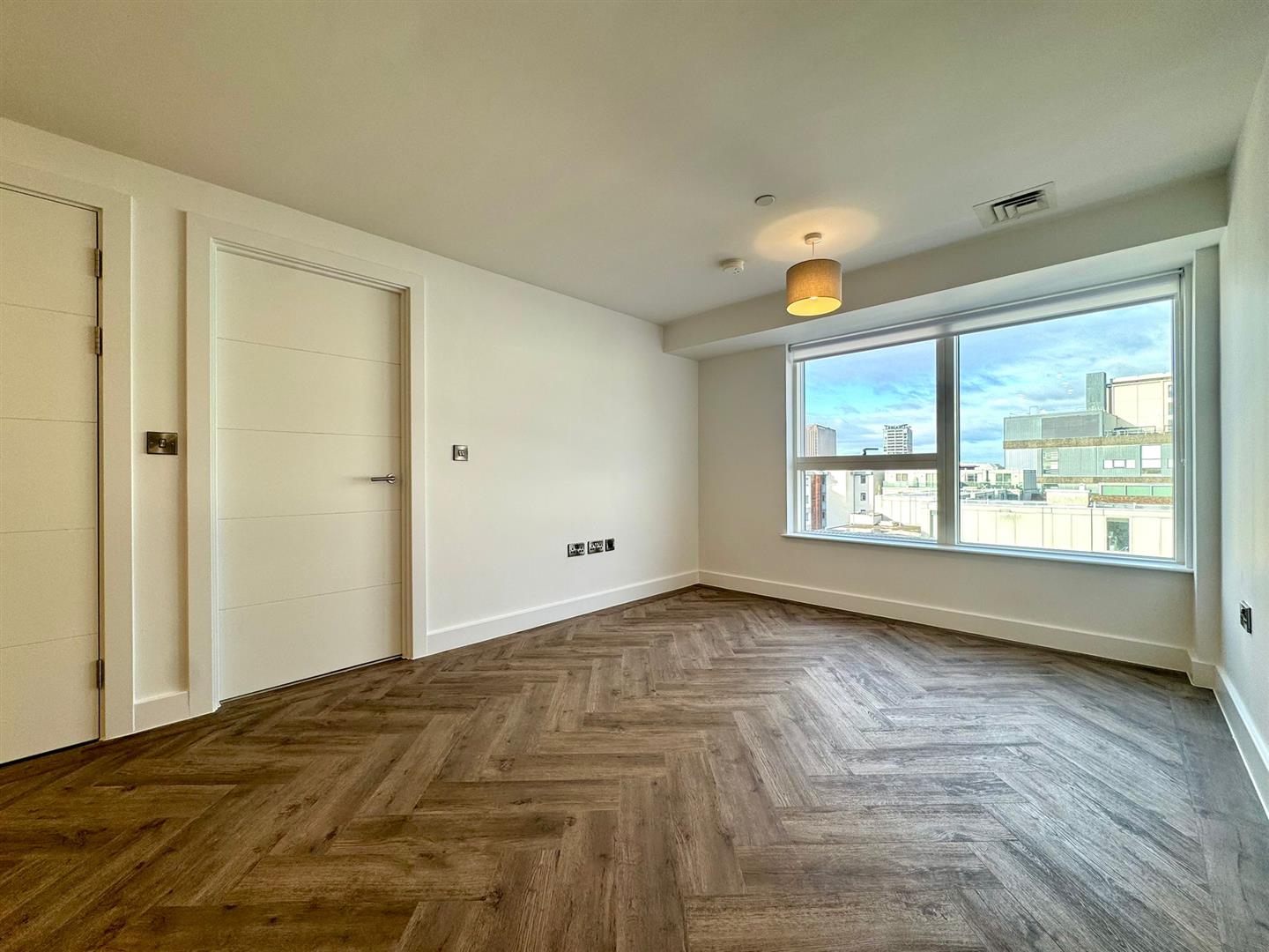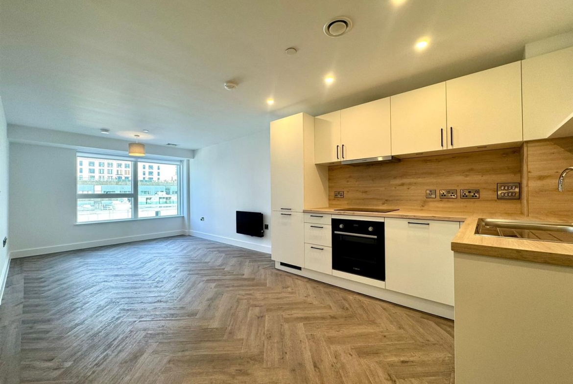 The apartment comprises a large open plan living room/dining area with contemporary wooden flooring and stylish fitted kitchen with integrated appliances. Off the living area is a spacious carpeted double bedroom, modern bathroom with large shower and a utility cupboard offering ample storage and access to a ventilation system throughout.