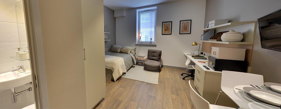 Booking now in advance – one of our rarely available Premier Studio Plus apartments at Urban Study Jesmond. ALL BILLS INCLUSIVE (ex. Council Tax, Band A) moments from the Sandyford Road. Perfect for working professionals and students this studio apartment in this super-popular development has a galley kitchen (oven, electric hob, extractor fan, microwave and fridge/freezer), en suite shower room, desk space – perfect for working from home or studying and great storage solutions for studio living.