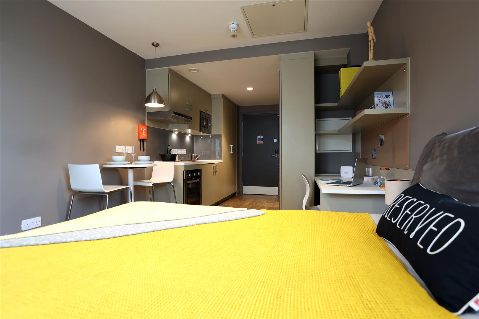 Coming to market in early April this modern and contemporary studio at Urban Study Melbourne ALL BILLS INCLUSIVE (ex. Council Tax, Band A) in Newcastle City Centre. Perfect for working professionals and students this studio apartment in this super-popular development has a galley kitchen (oven, electric hob, extractor fan, microwave and fridge/freezer), en suite shower room, desk space – perfect for working from home or studying and great storage solutions for studio living.