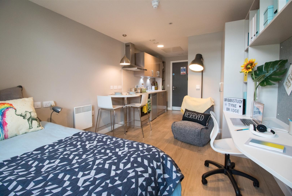 As well as modern, clean bedrooms complete with kitchenette and an ensuite bathroom, Urban Study residents have access to all the communal areas and amenities. To name a few: cinema room, coffee bar, gym, parking, and laundry. Tyne Bridge residents also have access to 24/7 assistance and concierge services.