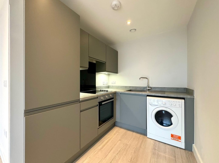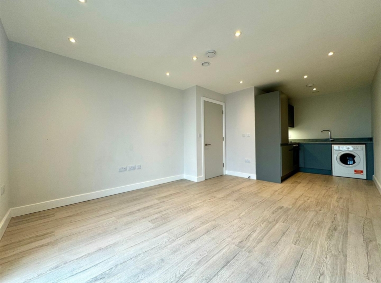 The property benefits from an entrance hallway with ample storage leading into an open plan living room / dining area with contemporary wooden flooring, floor to ceiling windows and a stylish grey kitchen with integrated appliances. Also off the hallway is a spacious double bedroom which is carpeted and luxury bathroom suite.