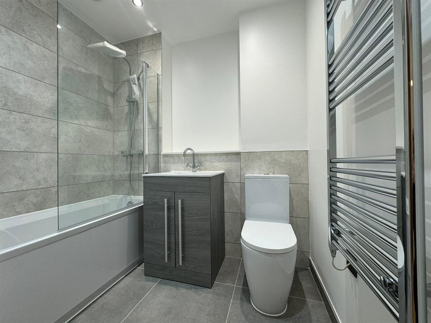 The property benefits from an entrance hallway with ample storage, leading into an open plan living room/dining area with contemporary wooden flooring, stylish grey kitchen with integrated appliances, large double bedroom which is carpeted and a luxury bathroom with shower.