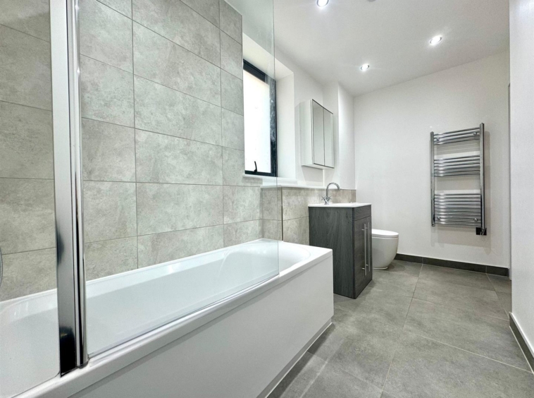 The property benefits from an entrance hallway with ample storage, leading into an open plan living / dining area with wooden flooring, stylish grey kitchen with integrated appliances, a large double bedroom which is carpeted and a luxury bathroom with bath and shower.