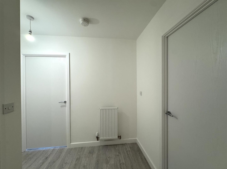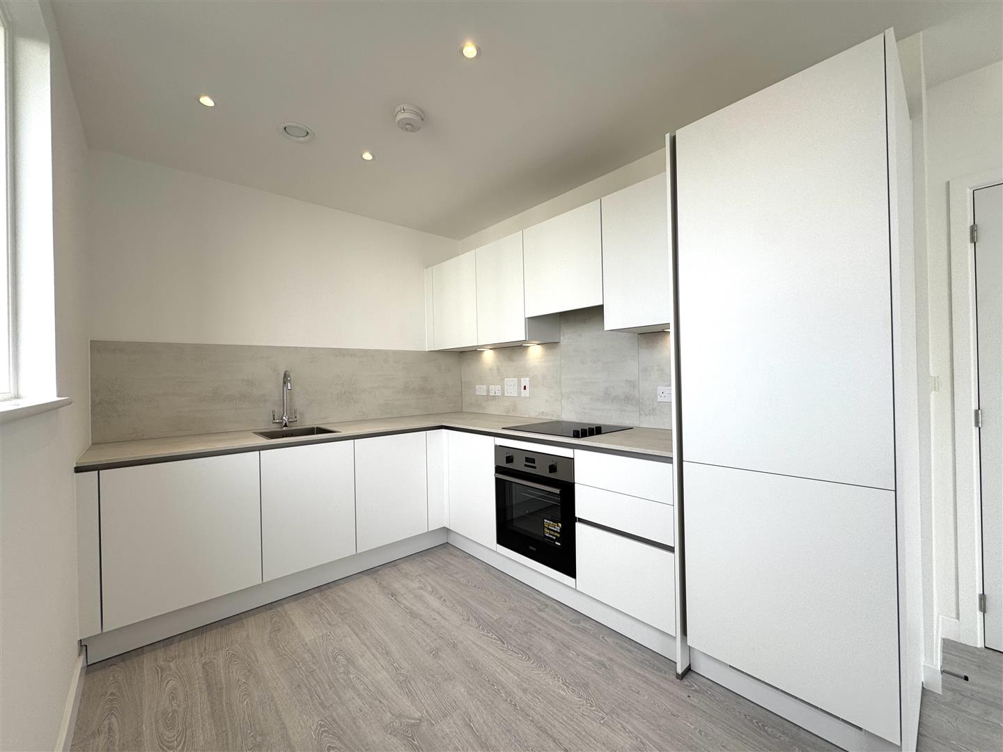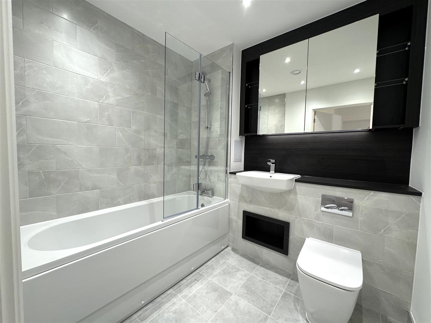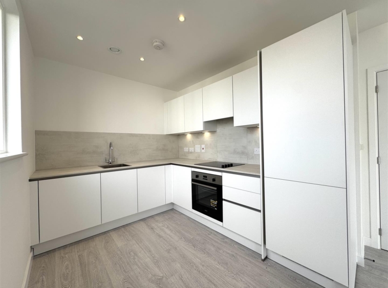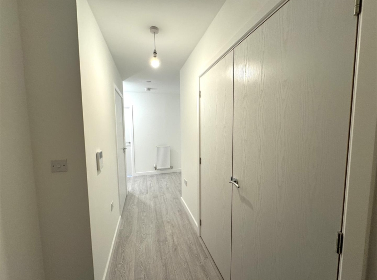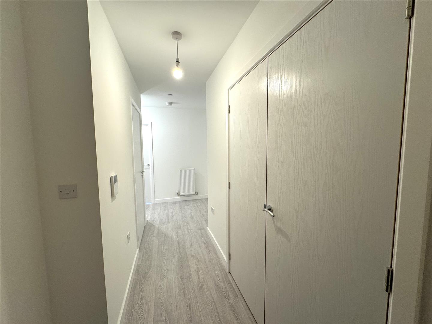 The property itself benefits from an entrance hall with large utility cupboard leading to a long open plan living area with contemporary wood effect flooring and private balcony, stylish white kitchen with integrated appliances, two double bedrooms, two luxury bathrooms, neutral decoration throughout and secure video entry system.