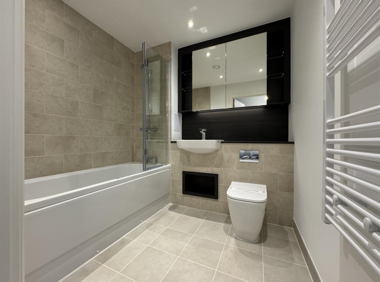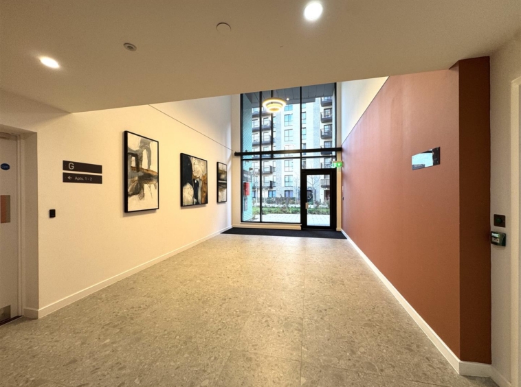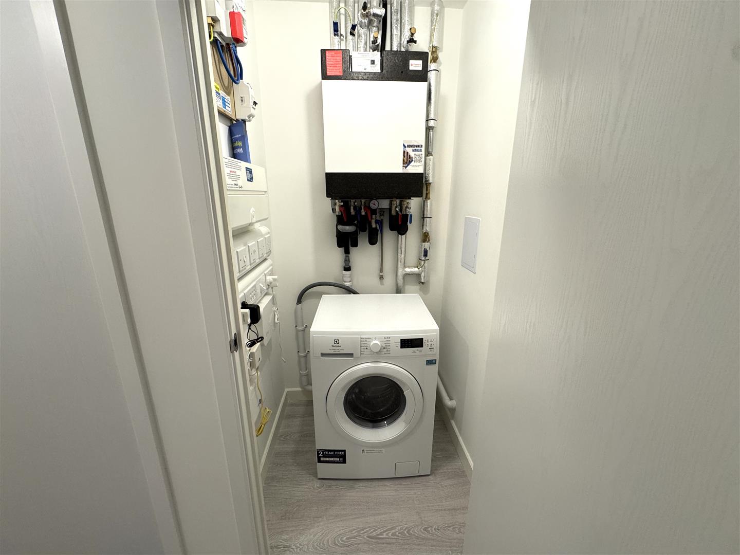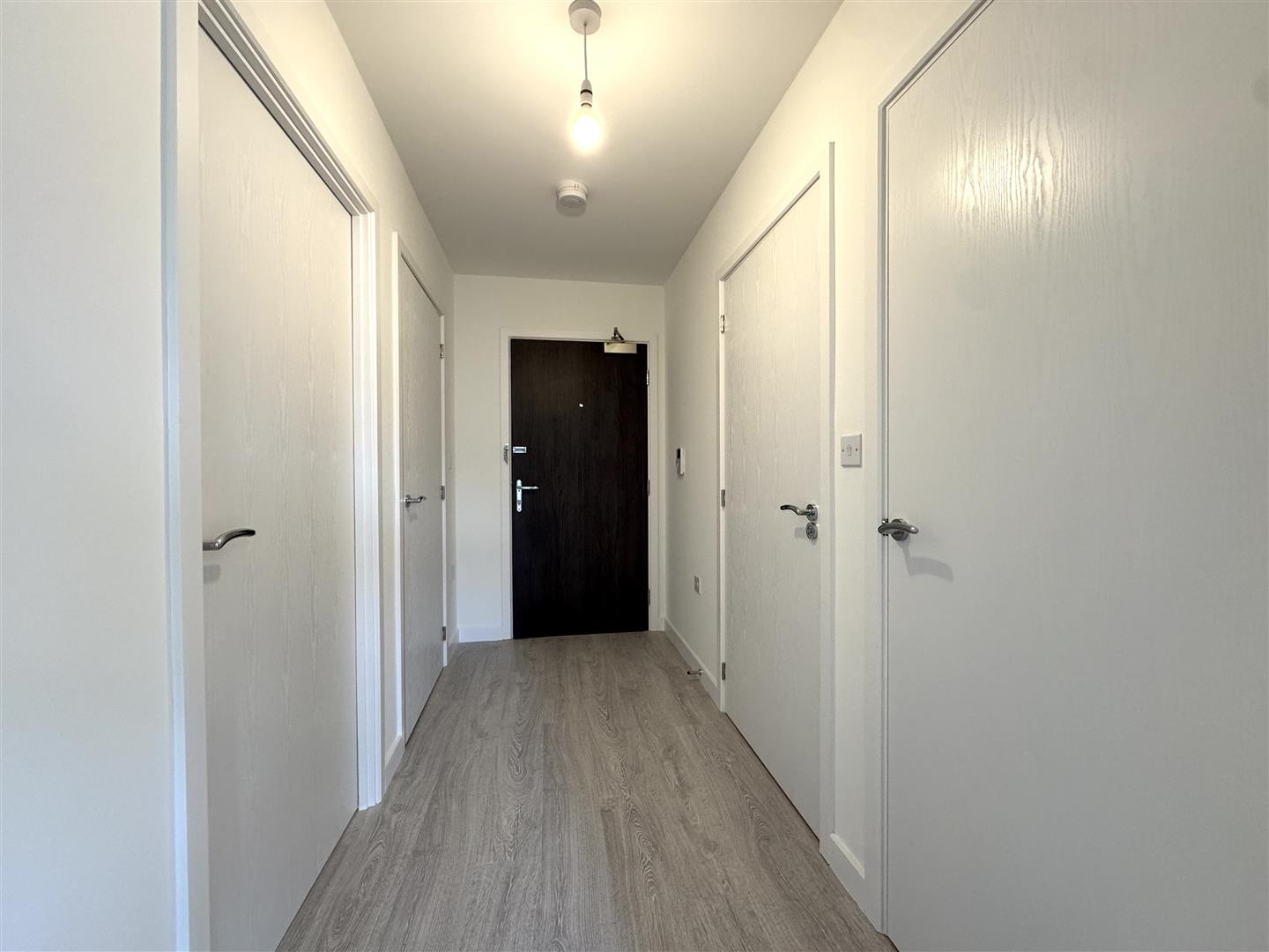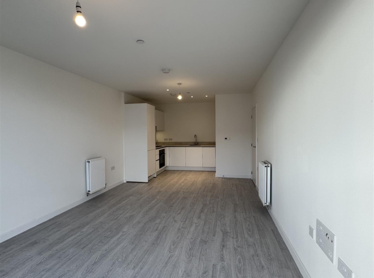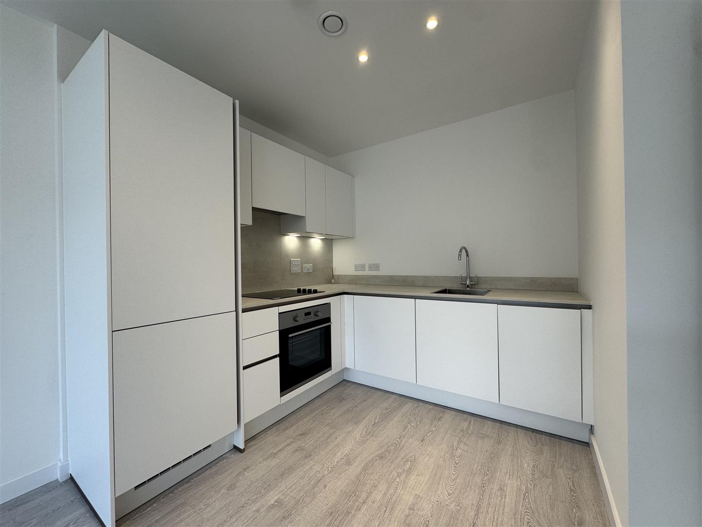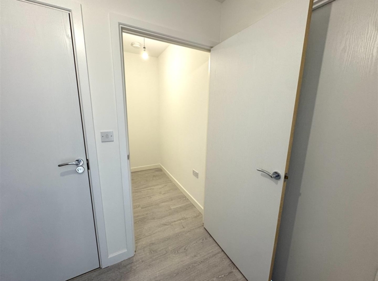 The property itself benefits from an entrance hall with large storage cupboard and utility cupboard leading to an open plan living area with contemporary wood effect flooring and private balcony, stylish fully integrated white kitchen, large double bedroom, luxury bathroom with bath and shower, neutral decoration throughout and secure video entry system.
