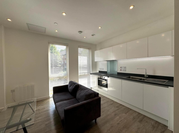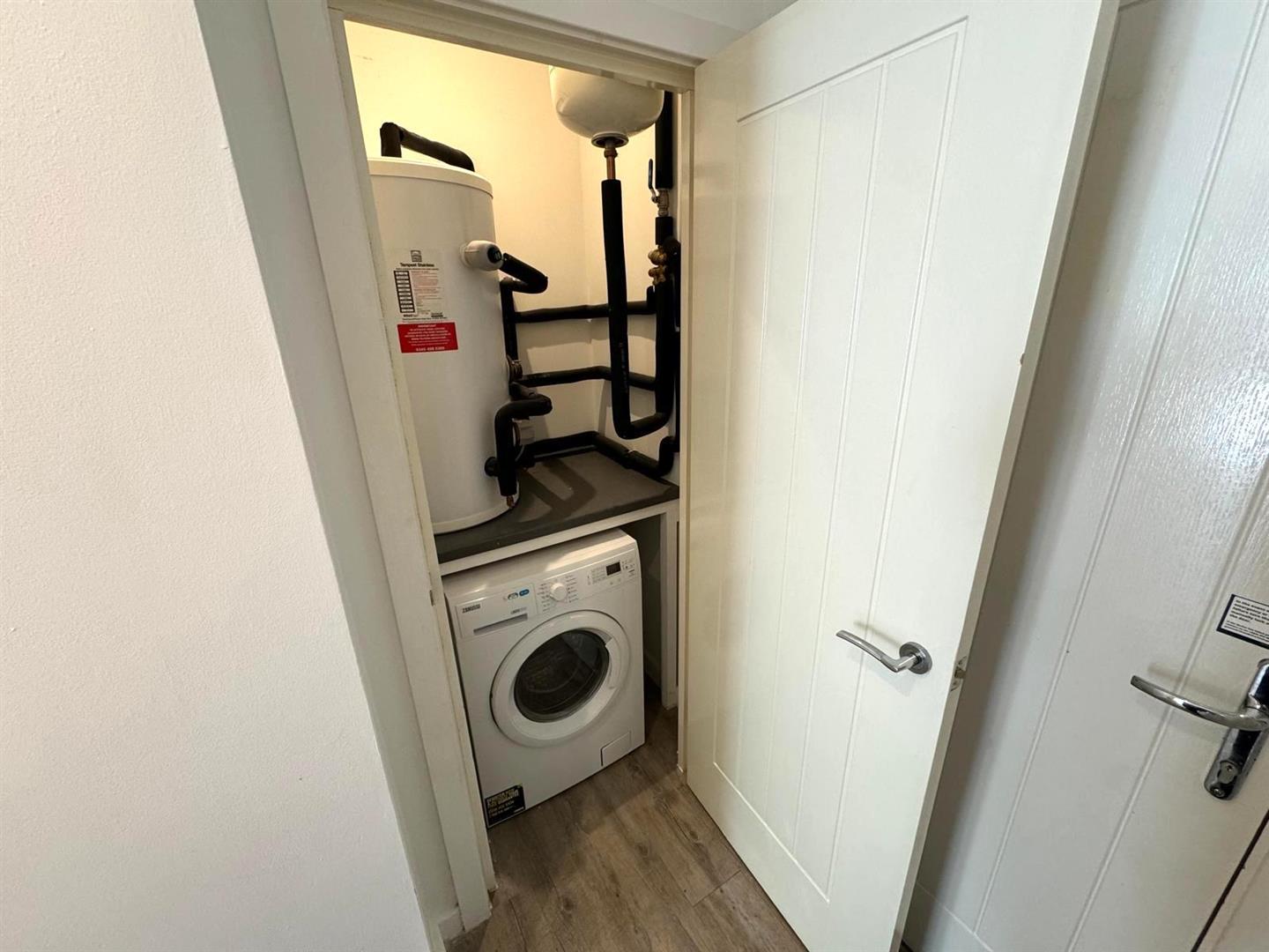 This well presented property benefits from an open plan living area with wooden effect flooring, stylish white kitchen with integrated appliances and separate utility cupboard, sectioned off sleeping area with double wardrobe, luxury shower room, secure video entry access and neutral decoration throughout.