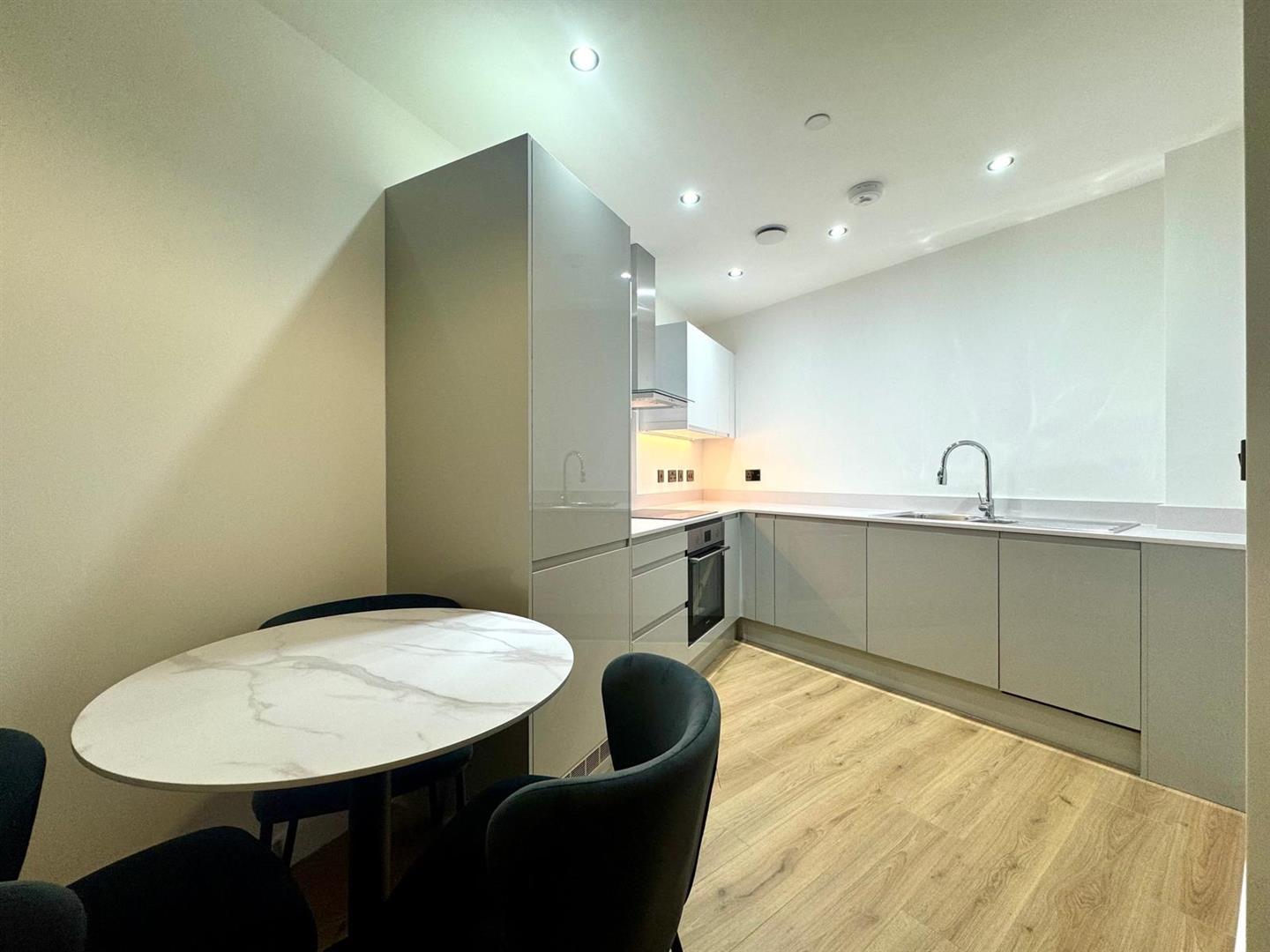 The property benefits from an entrance hallway with ample storage, leading into an open plan living room / dining area and stylish grey kitchen with integrated appliances. Also off the hallway is a large double bedroom which is carpeted and a luxury bathroom with bath and shower.