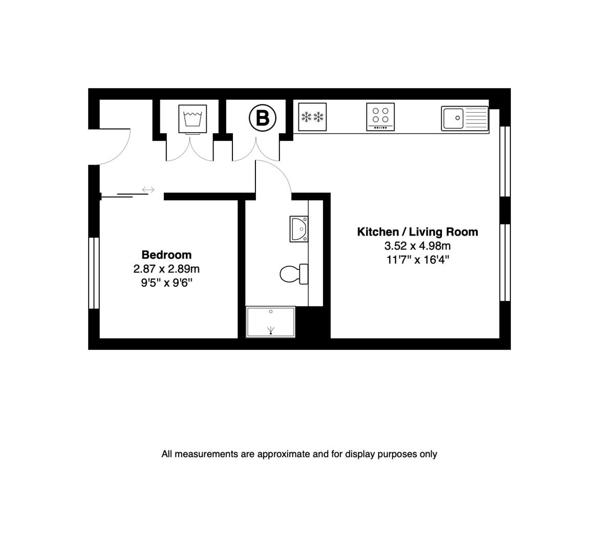 The property itself benefits from a long hallway with storage cupboard leading to an open plan living area with wooden flooring and large windows offering plenty of natural light, a stylish white kitchen with integrated appliances, double bedroom, luxury shower room, neutral decoration throughout and a Viewsecure intercom service.