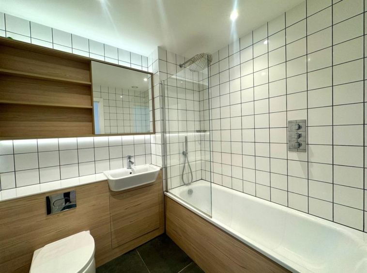 The apartment benefits from a spacious entrance hallway with ample storage leading into a large open plan living area with contemporary wooden flooring throughout and a stylish grey kitchen with integrated appliances. Also off the hallway is a large double bedroom and a luxury bathroom with bath and shower.