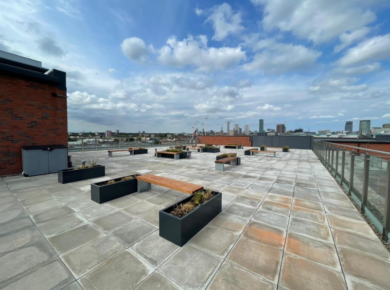 Residents have the use of a lift to all floors, and access to a large communal roof terrace with panoramic city views.
