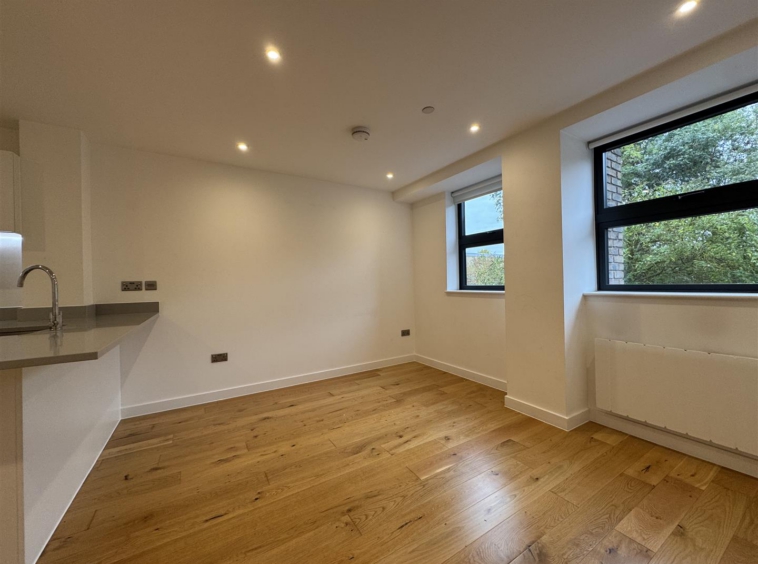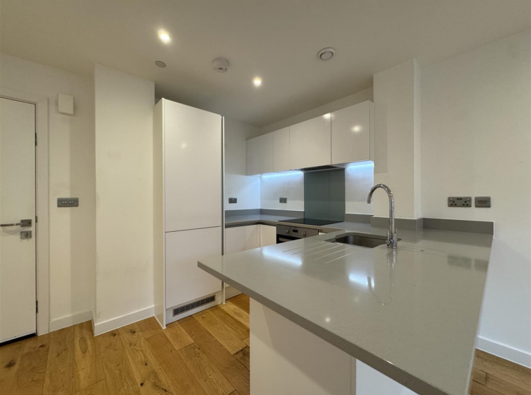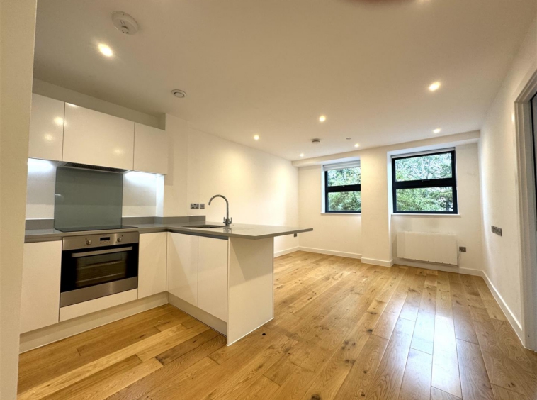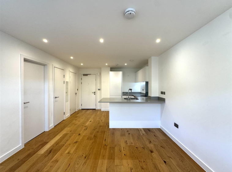The property benefits from a large open plan living area with wooden flooring, fully fitted stylish white kitchen with breakfast bar and separate utility cupboard, large double bedroom, luxury shower room, neutral decoration throughout and secure entry-phone access.