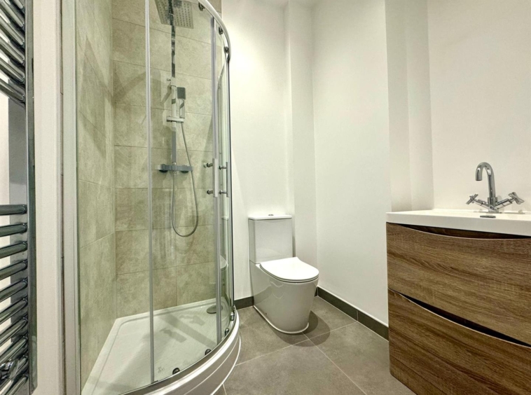 Upon entrance of the property, stairs lead you up to the spacious landing area with ample storage allowing access to the open plan living room with contemporary wooden flooring throughout and stylish grey kitchen with integrated appliances. Also off the landing is the large double bedroom which is carpeted, and a modern bathroom with shower.