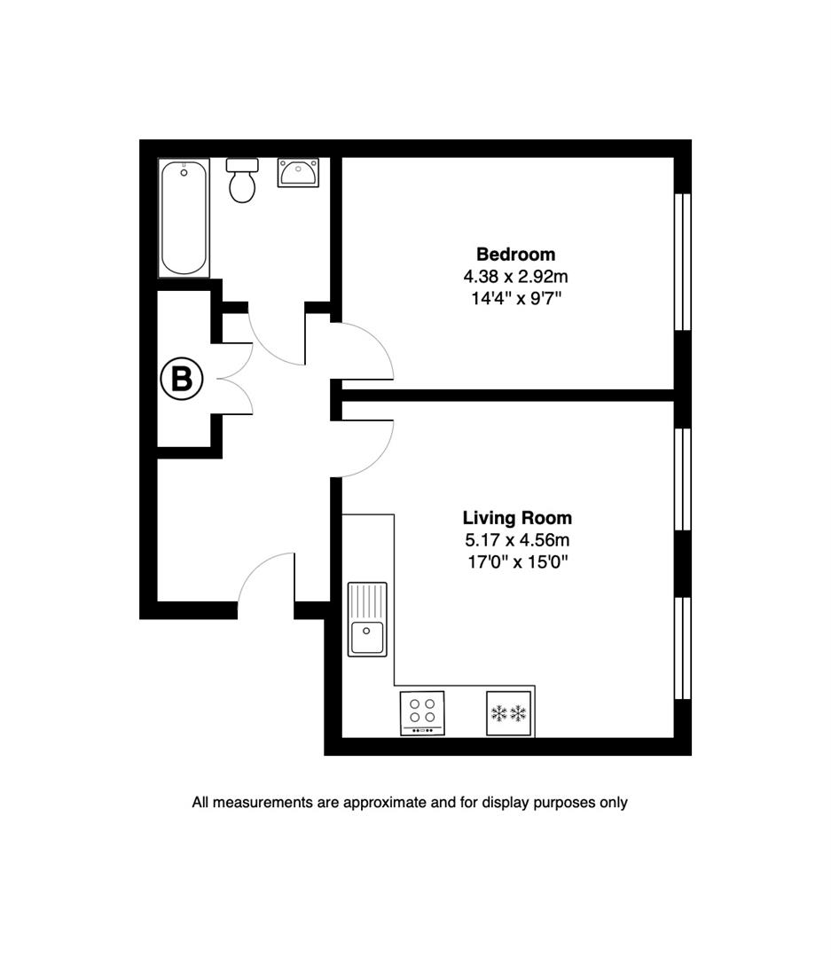 The property benefits from an entrance hallway with ample storage leading into an open plan living room / dining area with floor to ceiling windows and stylish white kitchen with integrated appliances. Also off the hallway is a spacious double bedroom and a separate modern bathroom with bath and shower.