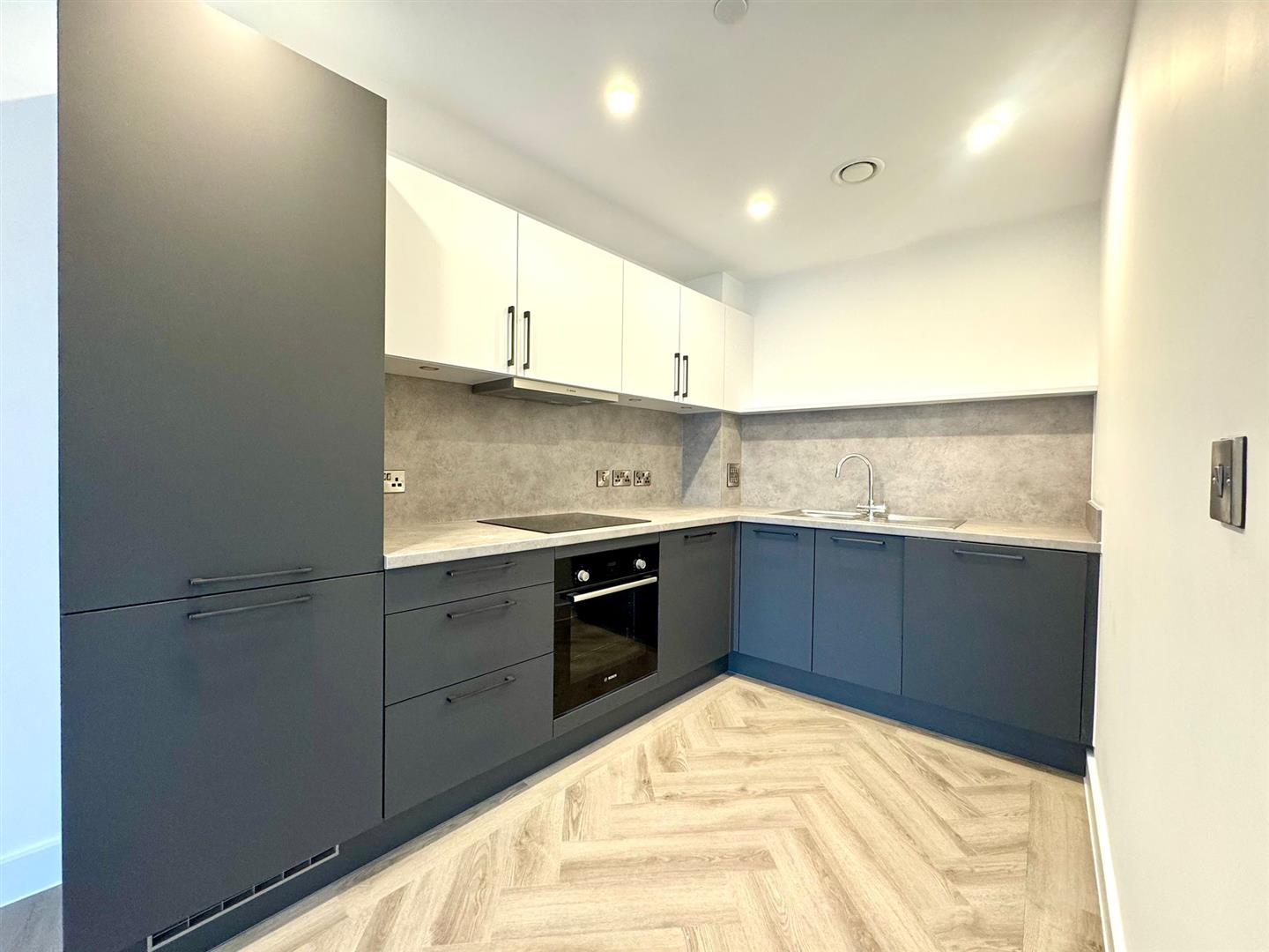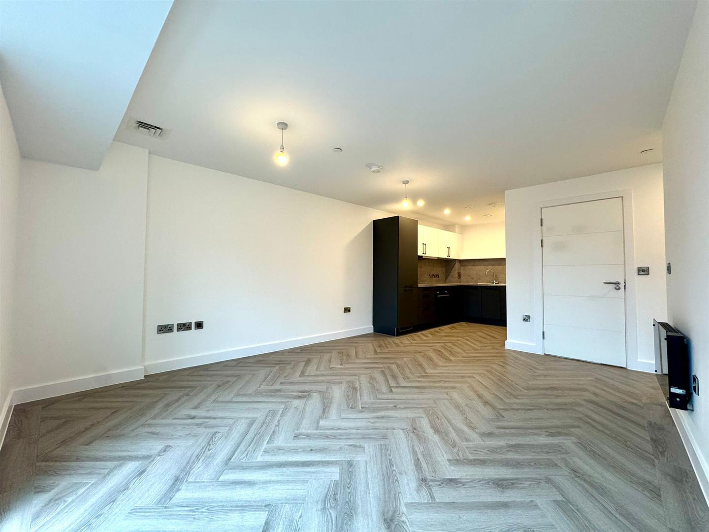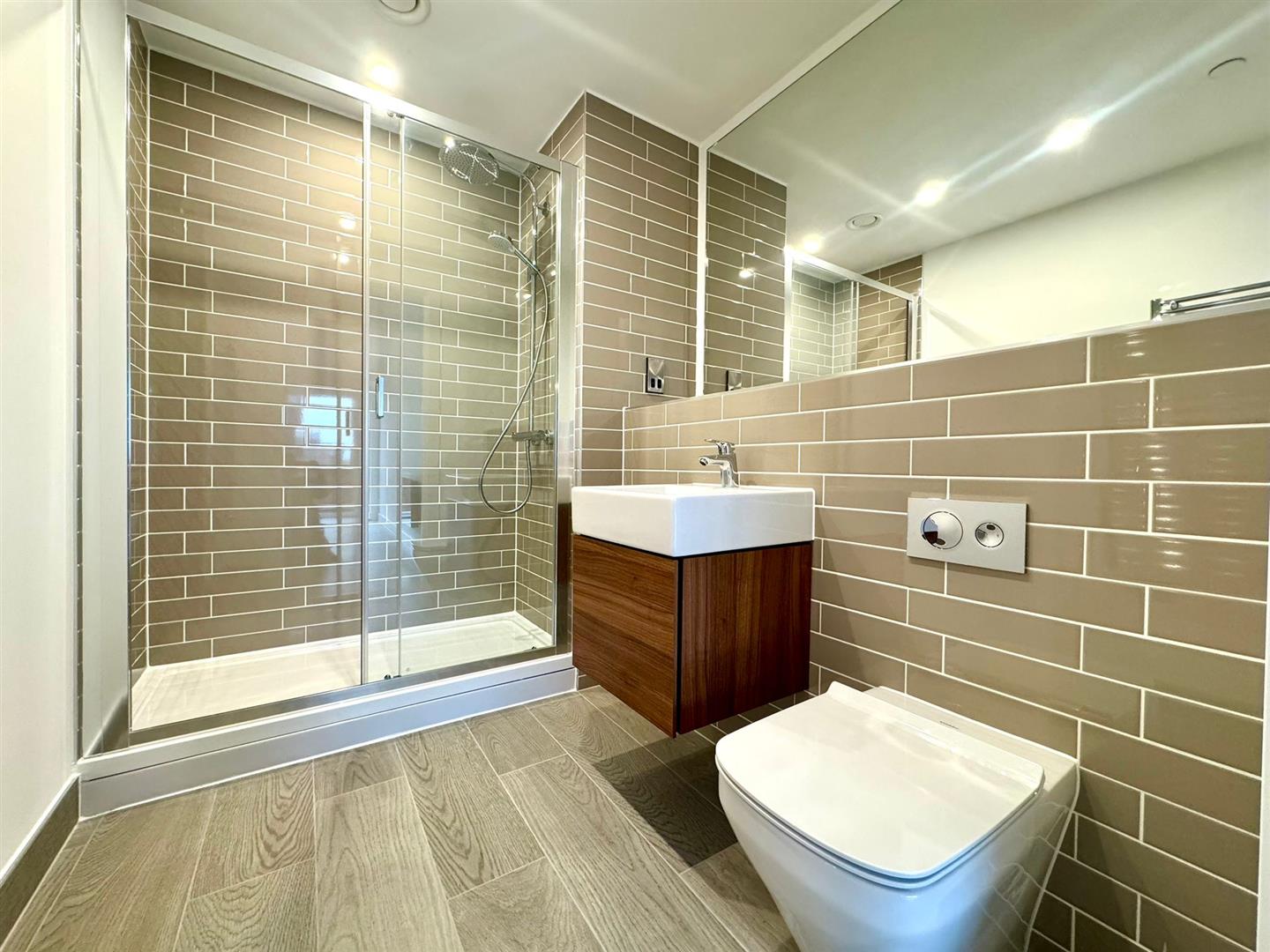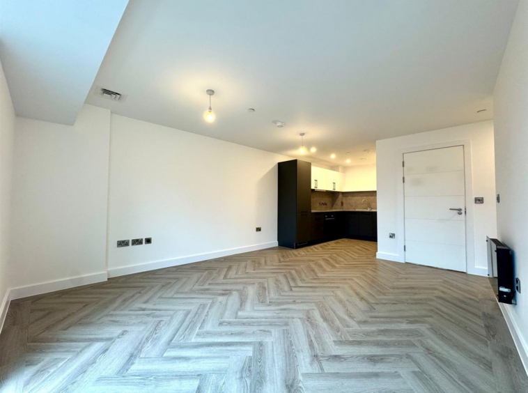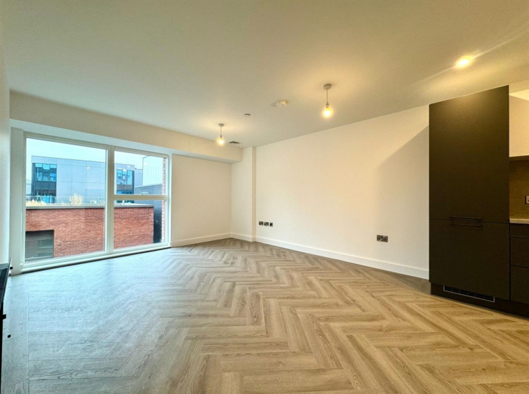 The apartment comprises a large open plan living room/dining area with contemporary wooden flooring and stylish fitted kitchen with integrated appliances. Off the living area is a spacious carpeted double bedroom, modern bathroom with large shower and a utility cupboard offering ample storage and access to a ventilation system throughout.