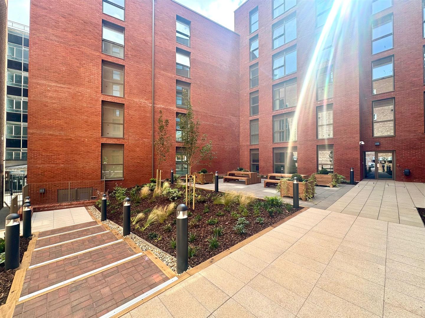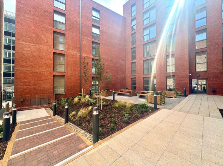 Residents of the development have use of a lift to all floors, a communal study area on the ground floor and two internal gardens. There is also a large roof terrace offering ample outdoor seating and views across the city centre.