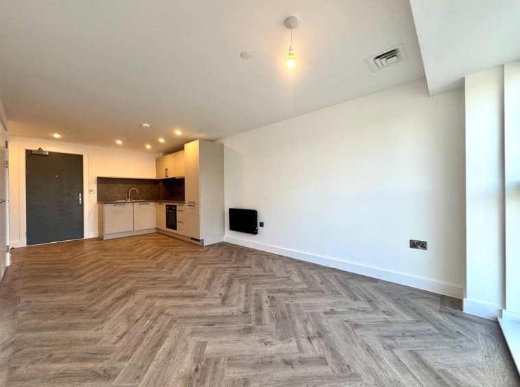The apartment comprises a large open plan living room/dining area with contemporary wooden flooring and stylish fitted kitchen with integrated appliances. Off the living area is a spacious carpeted double bedroom, modern bathroom with large shower and a utility cupboard offering ample storage and access to a ventilation system throughout.