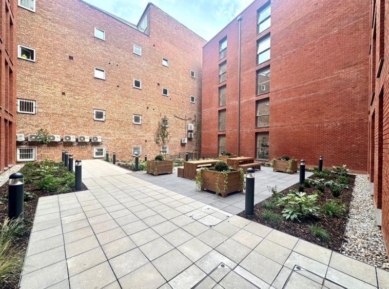 Residents of the development have use of a lift to all floors, a communal study area on the ground floor and two internal gardens. There is also a large roof terrace offering ample outdoor seating and views across the city centre.